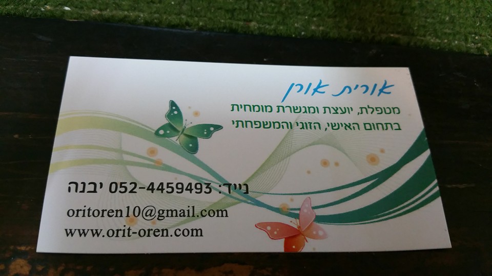שמי אורית אורן ואני מטפלת, יועצת ומגשרת מומחית בנושאי זוגיות ומשפחה. בעלת תעודות הסמכה. למעלה מעשר שנים אני מקשיבה,תומכת, עוזרת, ומייעצת ליחידים,זוגות ומשפחות. לפני שנים עברנו, ילדי ואני, תהליך גדול ועוצמתי. סוג של משבר משמעותי ששינה את חיינו מקצה לקצה. אותו המצב חייב אותי לעצור. לנשום ולעשות שינוי כיוון בחיי. חלק מאותו שינוי היה זה שגרם לי לפנות ללמודי רפואה משלימה במטרה להבין ולתמוך בעצמי וכמובן כדי שאוכל לעזור ולתמוך בילדי. כדי שנוכל, יחד, להתחיל מסע מלא גילויים עצמיים ותובנות. דרך חדשה. בהמשך, כשהבנתי שהטיפול ואני הם גוף אחד, המשכתי ללמוד ולהתמחות בתחומים נוספים, כמו: ייעוץ זוגי ייעוץ אישי גישור זוגי גישור משפחתי פסיכותרפייה הוליסטית