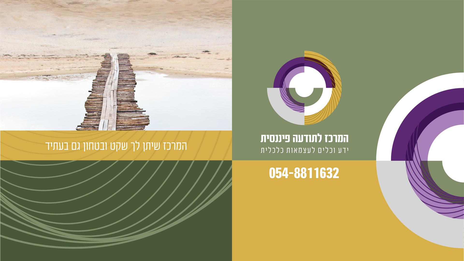 המרכז לתודעה פיננסית מאפשר לכם קבלת החלטות כלכליות ועסקיות נכונות לעבר שקט נפשי ובטחון כלכלי! בעידן של הצפת מידע, אנו נתקלים בקושי לקבל החלטות, שמא נחמיץ את ההזדמנות הנכונה! לעתים אנו מתלבטים אם להשקיע בשוק ההון או בנדל"ן או מתחבטים אם נכון להשקיע בנדל"ן בארץ או בחו"ל ולא יודעים מהם היתרונות והחסרונות בכל אחת מההשקעות. האם לקחת הלוואה או משכנתא או שמא לשחרר מחסכונותינו? ואולי, הקמנו עסק מתוך תשוקה ואמונה שהמוצר או השרות שלנו יתנו ערך ללקוחותינו אך לא יודעים איך לשווק אותו וכיצד לפרוץ קדימה? המרכז לתודעה פיננסית יאפשר לכם קבלת ידע וכלים יישומיים לקבלת החלטות בתחומים פיננסיים שונים המשפיעים על חייכם, כמו ניהול העסק, ניהול תקציב, שוק ההון, נדל"ן ופנסיה, זיהוי חסמי צמיחה – אל מול דרכים להתפתחות והתנהלות פיננסית, כלכלית, עסקית ופנסיונית נכונים המרכז מעניק ליווי וייעוץ אישי, עסקי ומשפחתי בתחום הפיננסי והפנסיוני, כולל בדיקת תנאי עבודה והעסקה שלכם ושל עובדיכם, ייעוץ משפטי, ייעוץ לפרישה ותכנון מס. השירותים מוצעים ע"י טובי המומחים בתחום: רואי חשבון, יועצי מס, עורכי דין, יועצים בתחום משכנתאות, נדל"ן, פיננסים, יועצים פנסיונים, יועצים לקריירה וסוכני ביטוח. הדגש במרכז הוא על הפרט - נקשיב, נלמד ונבנה את הליווי המותאם בדיוק עבורכם, נעניק לכם כלים להתנהלות פיננסית נכונה ונאפשר לכם להגשים תכניות בהווה ולתכנן את העתיד.