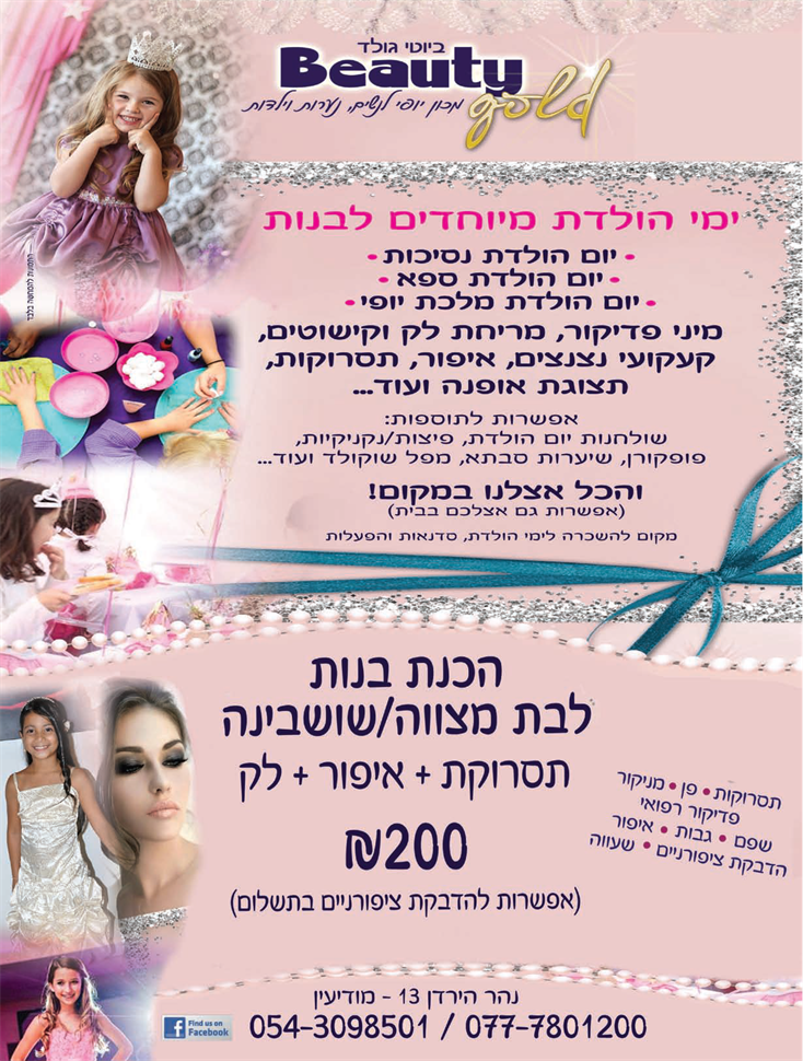 מכון יופי לנשים נערות וילדות הכנת בנות לבת מצוה יום הולדת לבנות..